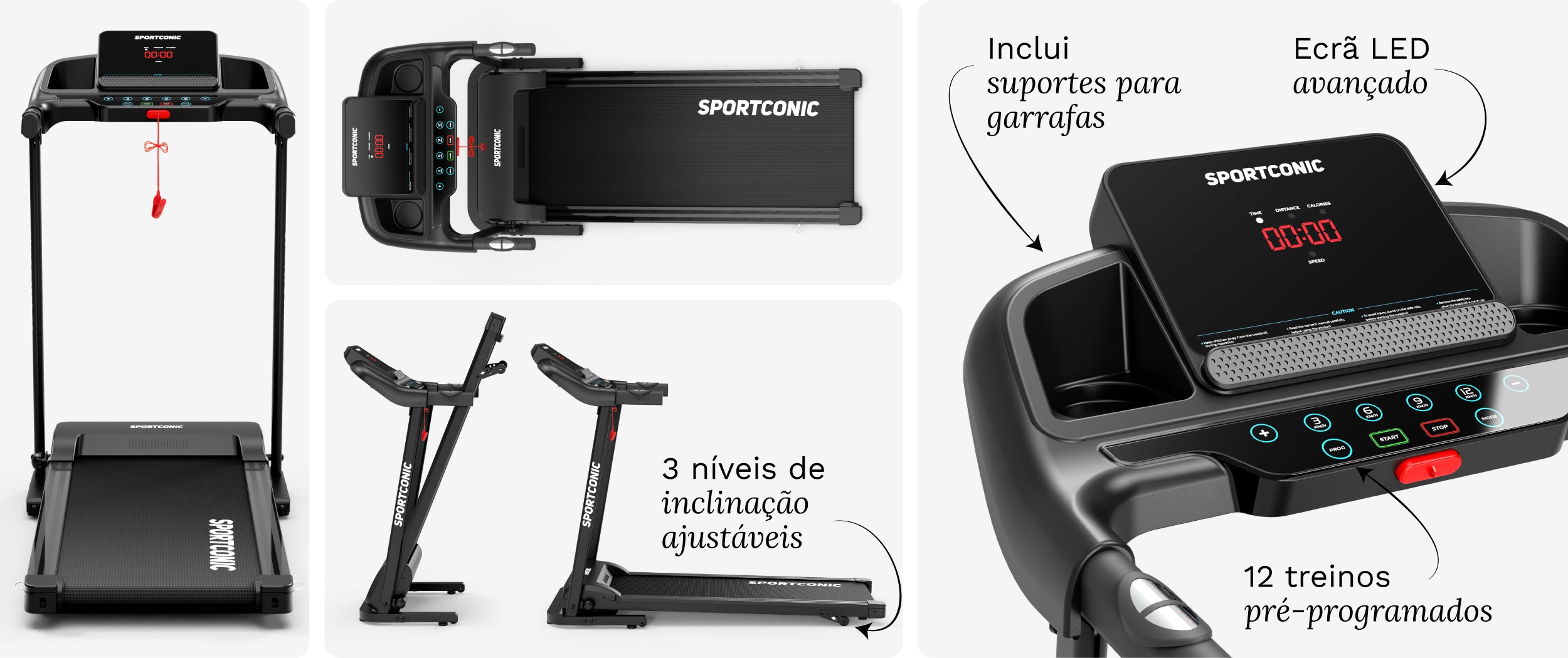 O painel de controlo permite ajustar facilmente a velocidade e escolher entre 12 programas de treino pré-programados , adaptados a diferentes objetivos, como a queima de gordura, a resistência ou o treino intervalado.